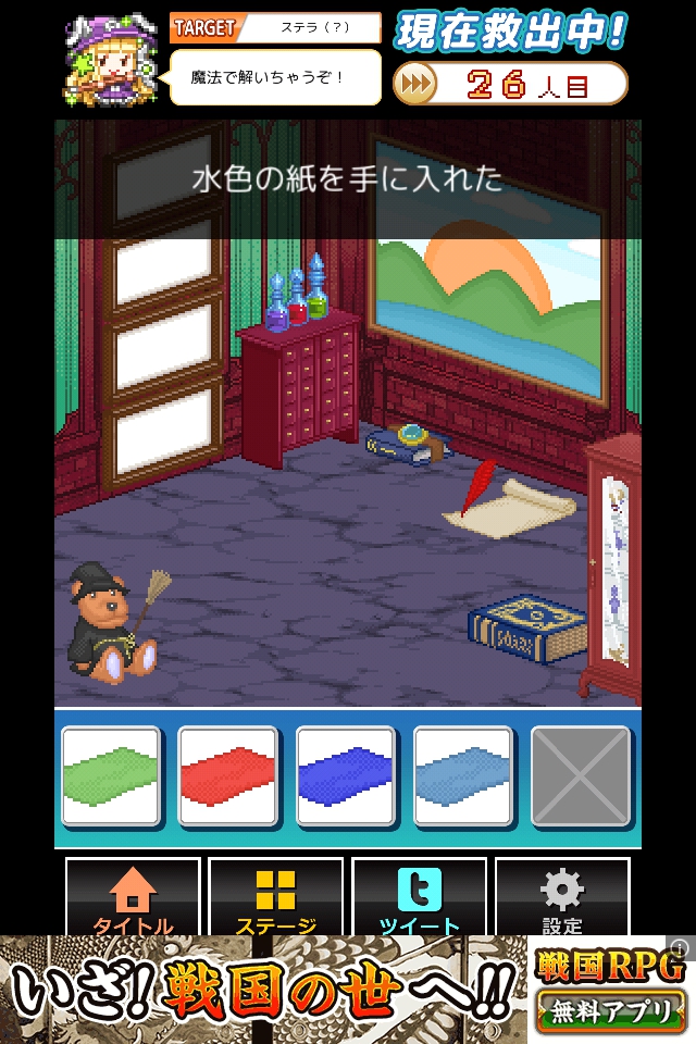 絵と同じ色の配置になるように、扉に紙をはめて脱出する。