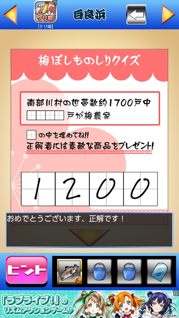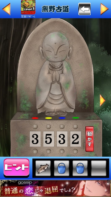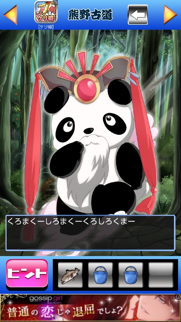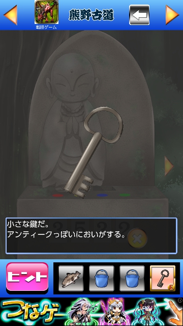 GTG48 関西編 和歌山県 攻略|脱出ゲーム攻略 |Page2 脱出ゲーム 更新日時:2015年7月23日 1:53 AM ページタイトルとURLをコピーする お店です。ポスターを調べます。 「1200」と入力して応募します。 紀州梅をもらいます。 熊野古道に移動します。 鏡を光の当たっている路面に置きます。 タップすると・・・ パンダが出てきます。目を調べてください。 1個目の黒いカケラです。 お地蔵さんがあります。 海岸のパラソル色の数を入力して、赤ボタンを押します。 お地蔵さんが動きます。台座の穴を調べます。 カギを手に入れます。 道の左奥のみかんを手に入れます。 噴水の下の白い台座にカギ穴があります。 ページ: 1 2 3 前ページへ 次ページへ SQOOLのYouTubeチャンネル スポンサーリンク