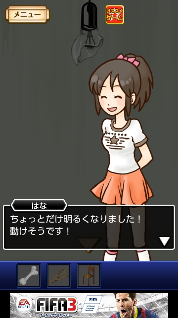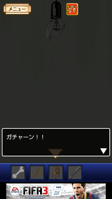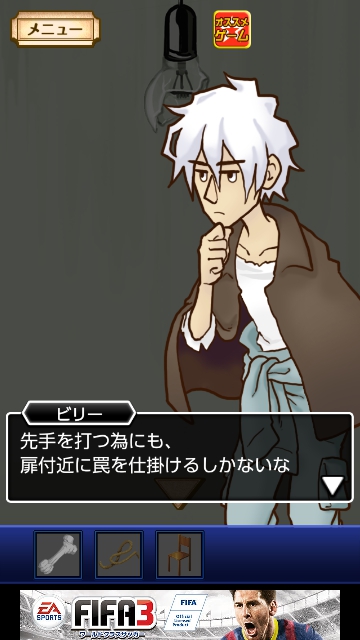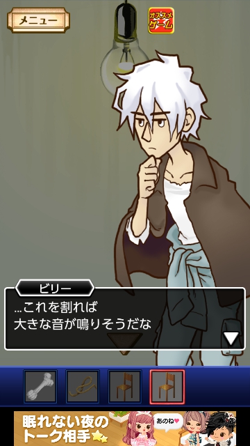 謎解き名探偵ビリー 金曜日★~★★★全攻略|脱出ゲーム攻略 |Page3 脱出ゲーム 公開日時:2014年7月6日 12:45 AM ページタイトルとURLをコピーする はなも動けるようになりました。 タップして椅子をゲット。 タップして、はなに話しかけます。 「ペンライト」をゲット。 「椅子」を使って、電球をタップします。 看守が来てドアを開けさせるつもりです。 電球が割れました。 「ペンライト」を使って部屋をタップします。 少し明るくなりました。 罠を仕掛けることにします。 「ロープ」を使って、ドアをタップします。 謎解き脱出ゲーム 名探偵ビリー 各曜日完全攻略 ページ: 1 2 3 4 5 6 7 前ページへ 次ページへ SQOOLのYouTubeチャンネル スポンサーリンク