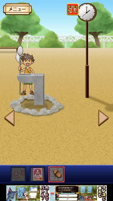 「カブトムシ」を使って、虫取りアミを持っている少年をタップします。