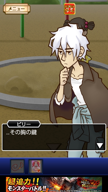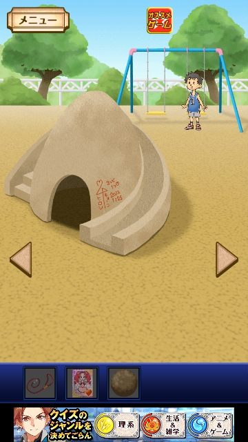 砂場の女の子をタップして話かけます。鍵を持っています。