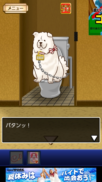 鎖が外れます。「犬のリード」を使って、犬をタップします。