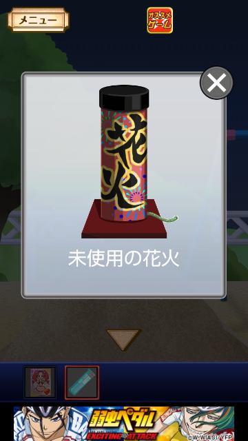 「100円ライター」を使って、「未使用の花火」をタップします。