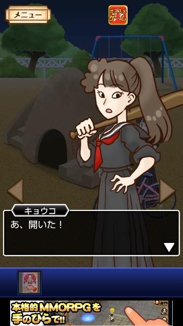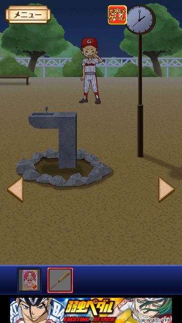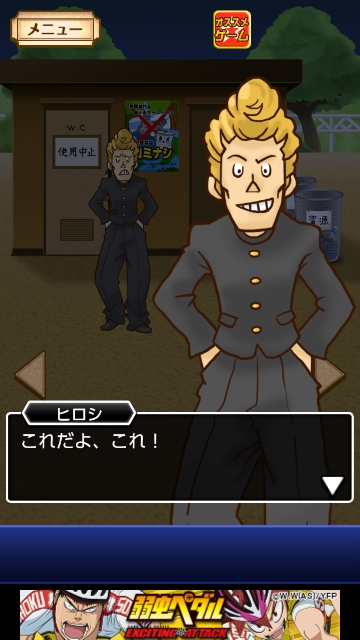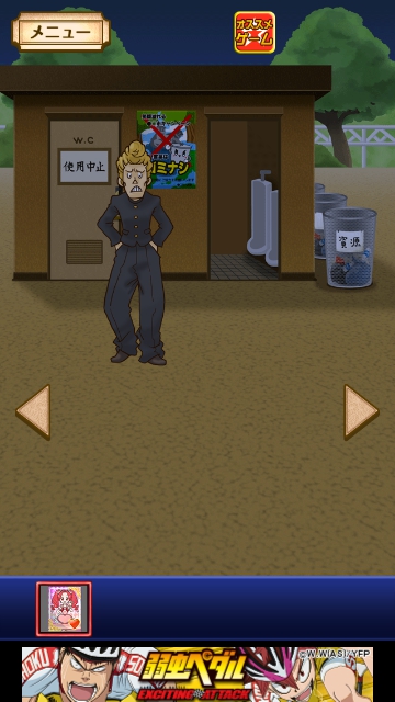 トイレの前にヒロシがいます。「魔女っ子カードSR」を使って、ヒロシをタップします。