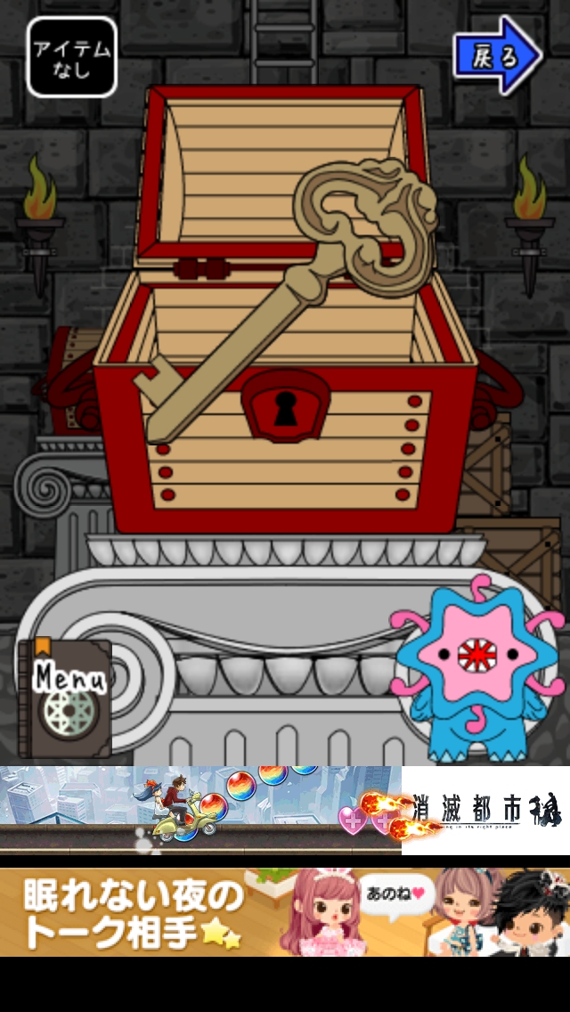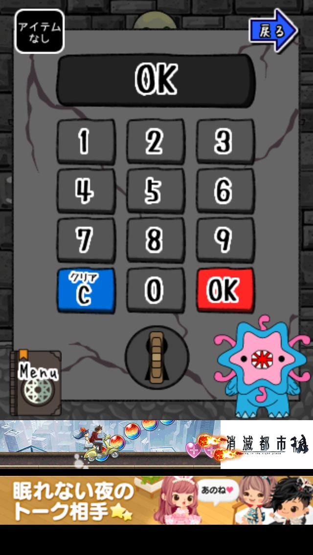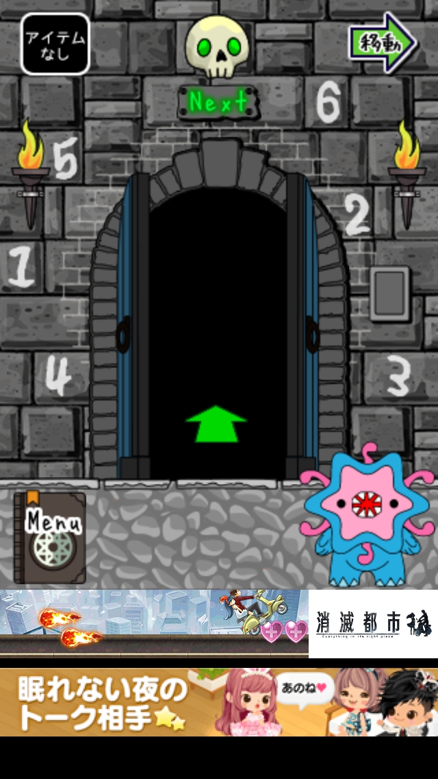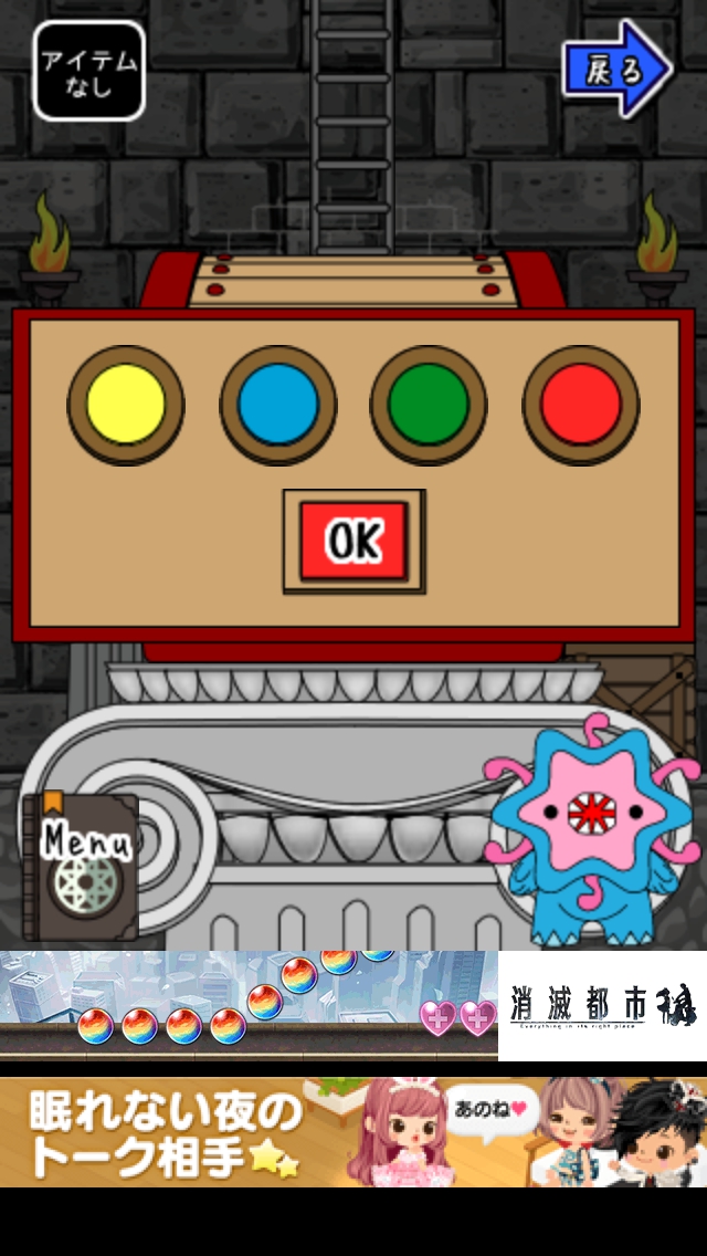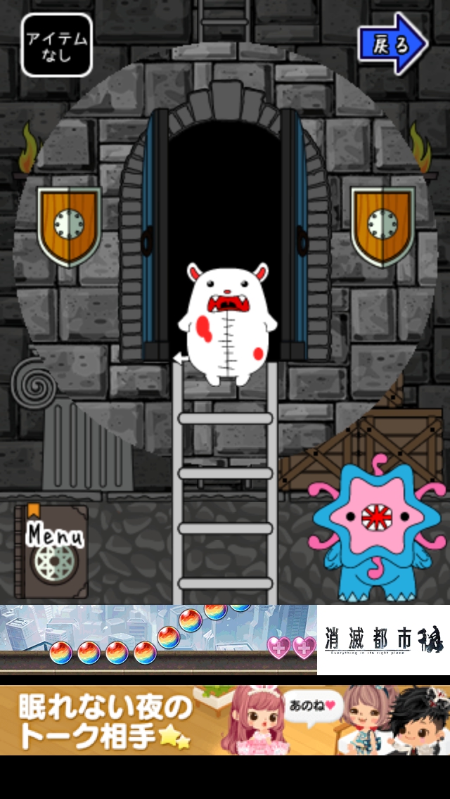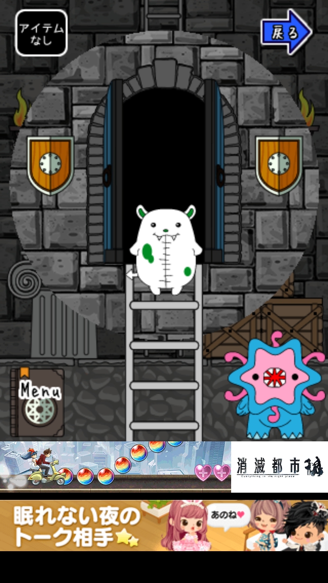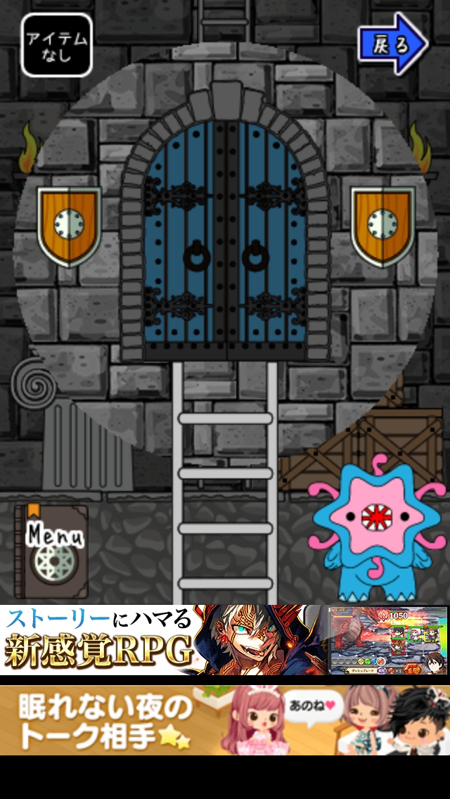 モンスターVS勇者 攻略 ステージ11~15|脱出ゲーム攻略 |Page4 脱出ゲーム 更新日時:2015年7月22日 12:16 PM ページタイトルとURLをコピーする ステージ14 脱出の扉の前に移動します。 扉の左右に数字があります。 1左 2右 3右 4左 5左 6右 ハシゴを登って左右の盾を、先ほどの 数字の左右に合わせてタップします。 左 右 右 左 左 右 黄青緑赤の順にモンスターが出てきます。 ハシゴを降りて、宝箱を拡大します。 出てきたモンスターの色の順にボタンを 合わせてOKをタップします。 鍵を取ります。 扉の横の装置に鍵をさします。 扉をタップして脱出しましょう。 ページ: 1 2 3 4 5 前ページへ 次ページへ SQOOLのYouTubeチャンネル スポンサーリンク
