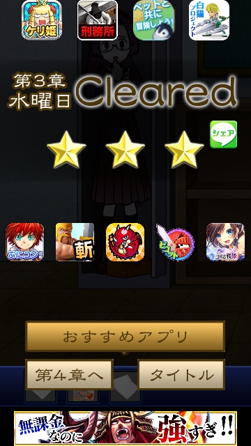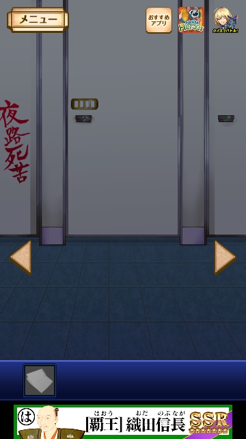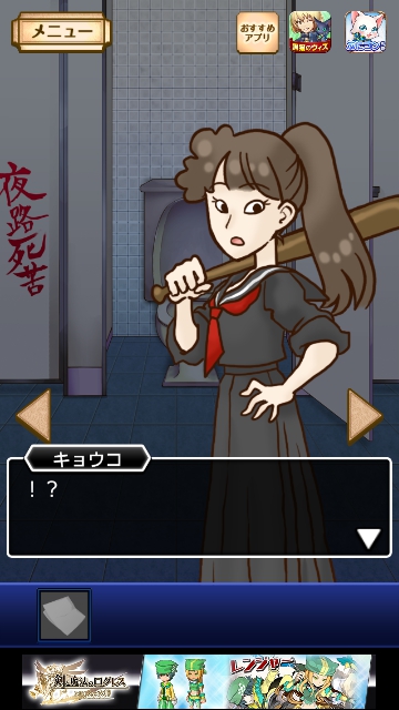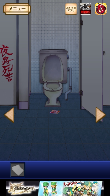 謎解き名探偵ビリー 再会 全曜日 星3★★★ 攻略|脱出ゲーム攻略 |Page3 脱出ゲーム 更新日時:2015年7月23日 1:53 AM ページタイトルとURLをコピーする 水曜日★★★ 水曜日限定でプレイします。 (携帯で日時を変更できる方はそれでもよいようです。) パスワードを入れると ビリーが襲われるところまでは同じです。 ここで 再度、トイレに向かいます。 「夜露死苦」とラクガキがあるので = 4649 と入力してOKを押すと キョウコが現れます。 そして 床にカードを落としていくので 手に入れます。 このカードを持ったまま 通常通りにプレイすると クリアです。 ページ: 1 2 3 4 5 前ページへ 次ページへ SQOOLのYouTubeチャンネル スポンサーリンク