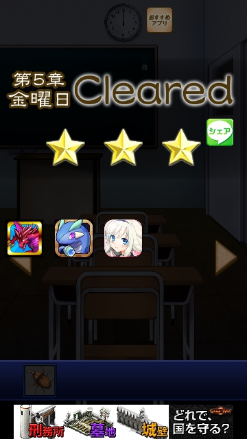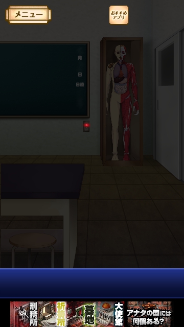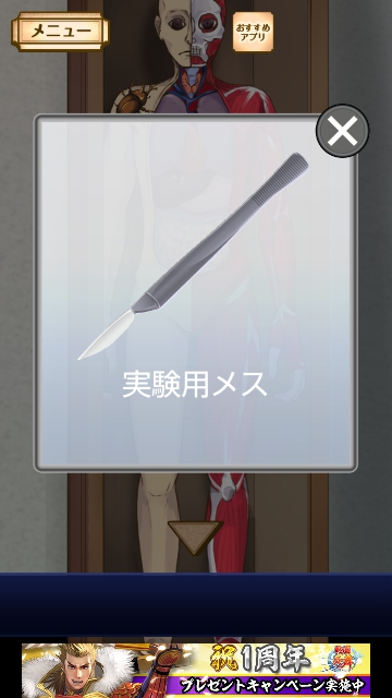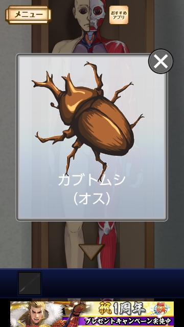 謎解き名探偵ビリー 再会 全曜日 星3★★★ 攻略|脱出ゲーム攻略 |Page5 脱出ゲーム 更新日時:2015年7月23日 1:53 AM ページタイトルとURLをコピーする 金曜日★★★ 金曜日限定でプレイします。 (携帯で日時を変更できる方はそれでもよいようです。) 理科室に行って、電気を点けます。 人体模型を調べると 手にメスと 肩にカブトムシがいるので カブトムシを手に入れます。 あとは 通常通りプレイすると クリアです。 謎解き脱出ゲーム 名探偵ビリー 再会 攻略記事一覧 ページ: 1 2 3 4 5 前ページへ SQOOLのYouTubeチャンネル スポンサーリンク