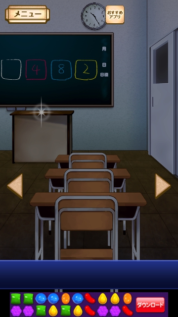 黒板右のドアをタップして脱出してください。