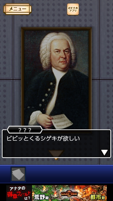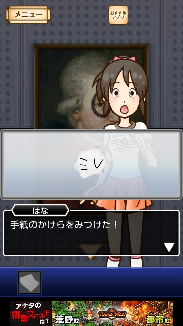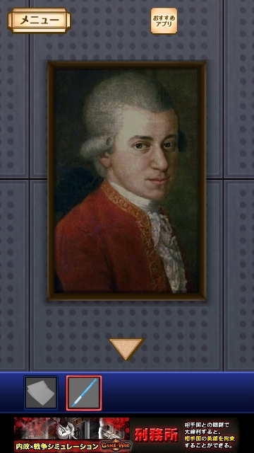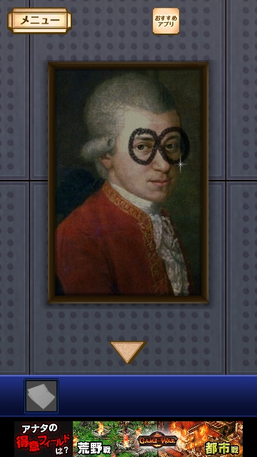謎解き名探偵ビリー 再会 火曜日★攻略|脱出ゲーム攻略 |Page3 脱出ゲーム 更新日時:2015年7月23日 1:53 AM ページタイトルとURLをコピーする 音楽室に移動します。 モーツアルトの肖像画でシャープペンを使うと はなちゃんがメガネを描きます。 お礼にメガネの下の光っているモノをもらいます。 手紙のかけらです。 次はバッハの肖像画に話しかけます。 シゲキが欲しいそうです。 教室に移動します。 後ろの習字が「かいじょ」と変わっています。 左のロッカーを開けると ドライバーがあるので手に入れます。 月の見える窓に移動します。 奥の机を調べると カギが見えるので 手に入れます。 ページ: 1 2 3 4 5 前ページへ 次ページへ SQOOLのYouTubeチャンネル スポンサーリンク