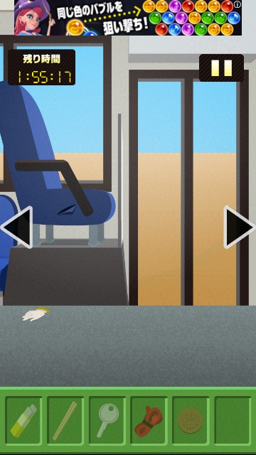 暴走バスからの脱出 攻略 その1 |Page3 脱出ゲーム 更新日時:2015年7月22日 12:12 PM ページタイトルとURLをコピーする 正面を向き、一番前まで移動して 料金受け皿を調べると 10円玉があるので 手に入れます。 一番前で左に移動すると 床に軍手が落ちているので 手に入れます。 その2に続きます。 脱出ゲーム 暴走バスからの脱出 攻略記事一覧 ページ: 1 2 3 前ページへ SQOOLのYouTubeチャンネル スポンサーリンク