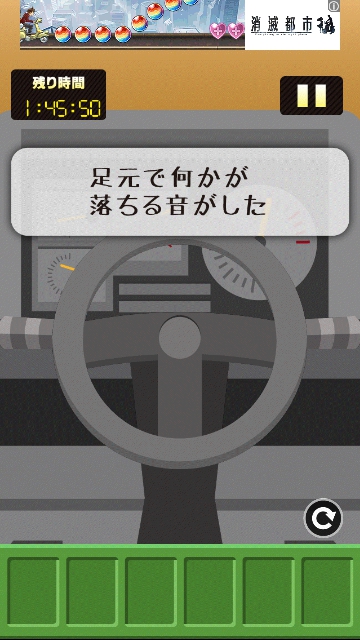暴走バスからの脱出 攻略 その3 |Page2 脱出ゲーム 更新日時:2015年7月22日 12:12 PM ページタイトルとURLをコピーする 左に紙のはさまった板があります。 拡大して 調べると 「振ってみよう」と文字が出るので 携帯本体を振ります。 すると ピンクのメモが出てきます。 ハンドルを調べます。 運賃パネルに「L2 R4」とあったので Left(左)=2 Right((右)=4 と解釈して ハンドルの左右の棒を 左に2回、右に4回 動かします。 「足元になにかが落ちる」と文字が 出るので、調べると ハンドルの右下に棒が落ちているので ひろうと 「サイドキーのレバー」が手に入りました。 ページ: 1 2 3 前ページへ 次ページへ SQOOLのYouTubeチャンネル スポンサーリンク