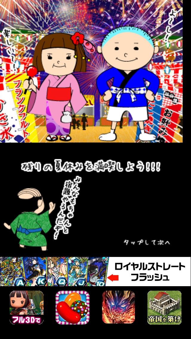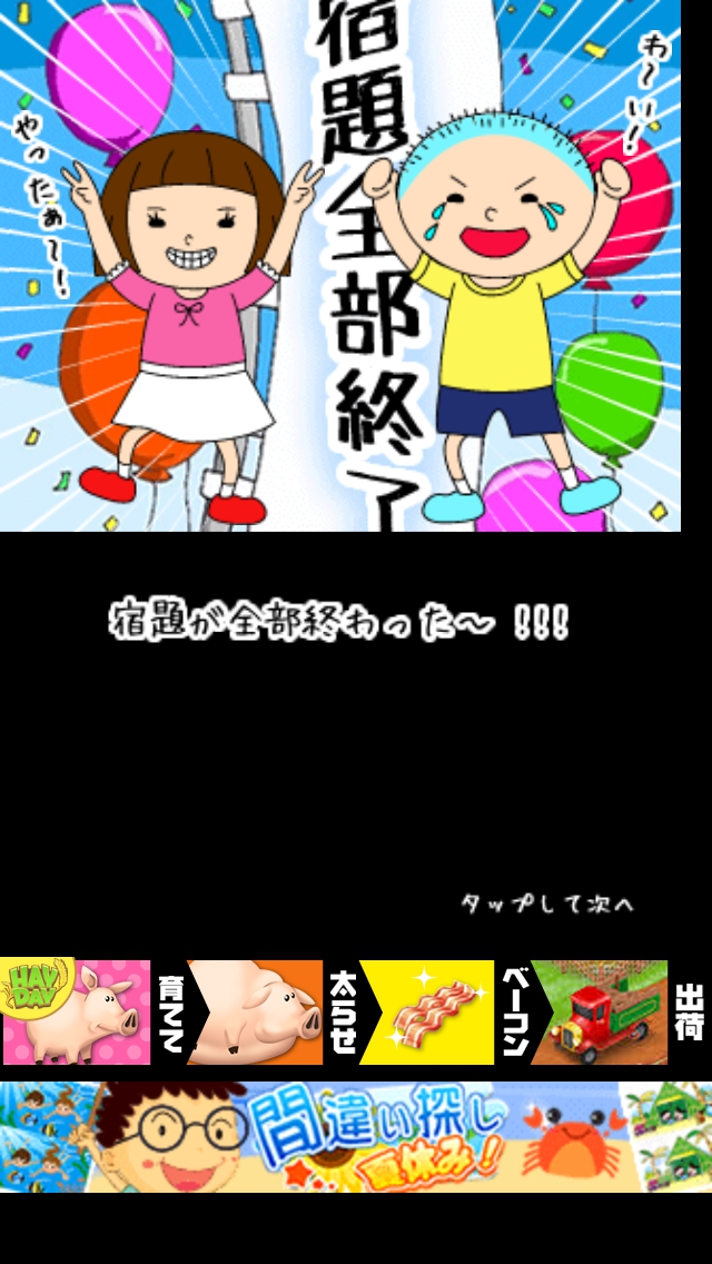 僕らの夏休み ステージ16~20 攻略|脱出ゲーム攻略 |Page5 脱出ゲーム 更新日時:2015年7月23日 1:53 AM ページタイトルとURLをコピーする ステージ20 このステージは謎解きはありません。 ストーリーのラストを楽しみましょう。 宿題も無事終わり残りの夏休みを満喫 です。良かった良かった。 脱出ゲーム 僕らの夏休み 攻略記事一覧 ページ: 1 2 3 4 5 前ページへ SQOOLのYouTubeチャンネル スポンサーリンク
