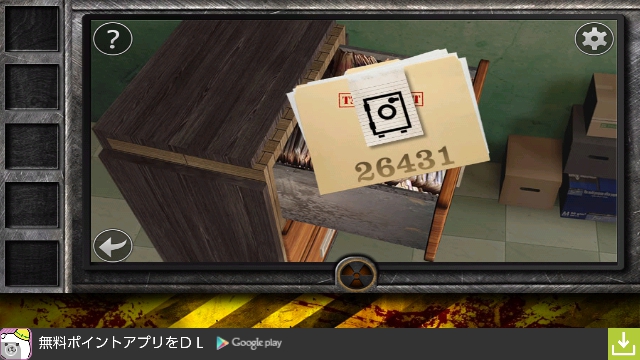 ウイルスの流行エスケープ Escape the Room EPDEMICS 攻略 レベル5|脱出ゲーム攻略 |Page2 脱出ゲーム 更新日時:2015年7月22日 12:12 PM ページタイトルとURLをコピーする 黒板を拡大して ハンカチとハケを組み合わせて クリーナーを作ります。 クリーナーで 黒板の血を数回タップします。 アイコンのクリーナーが消えるまで続けます。 机の右端の引き出しを開けます。 タップで調べます。 金庫の絵と 26431とメモがあります。 「ダンボールの部屋」に移動します。 正面のダンボールを拡大。 大きいダンボールを タップで開けます。 中からノコギリと・・・ 青い液体を手に入れます。 「黒板の部屋」に移動します。 ページ: 1 2 3 4 前ページへ 次ページへ SQOOLのYouTubeチャンネル スポンサーリンク