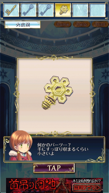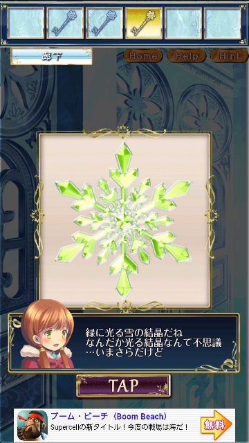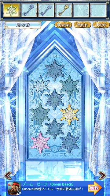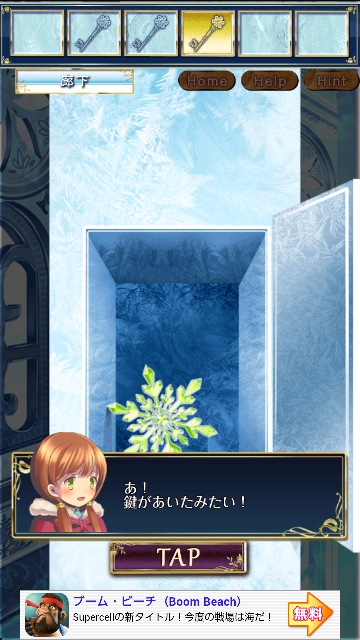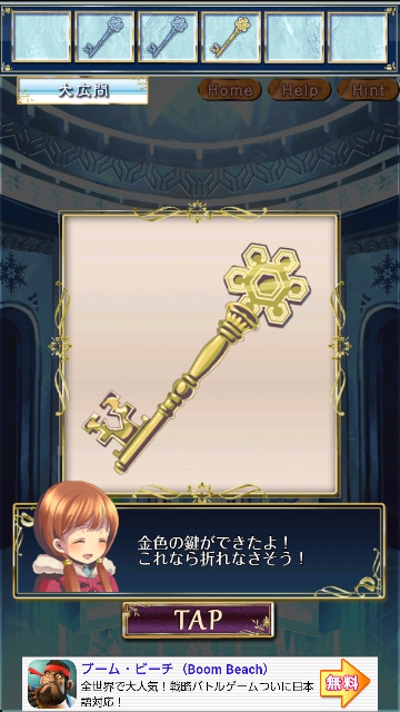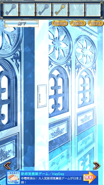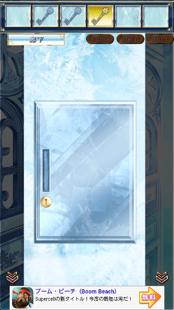 雪の女王と氷の城 ~童話脱出ゲーム~ ステージ5 攻略 |Page3 脱出ゲーム 更新日時:2015年7月22日 12:16 PM ページタイトルとURLをコピーする 右の天使も 台座を調べると 開いて 鍵のパーツが手に入ります。 アイテムの金の鍵のパーツを 組み合わせて金色の鍵にします。 廊下に移動します。 柱の扉に 金色の鍵を使うと 開いて 雪の結晶を手に入れます。 扉の前に移動して 雪の結晶を使うと ステージクリアです。 脱出ゲーム 雪の女王と氷の城 ~童話脱出ゲーム~ 攻略記事一覧 ページ: 1 2 3 前ページへ SQOOLのYouTubeチャンネル スポンサーリンク