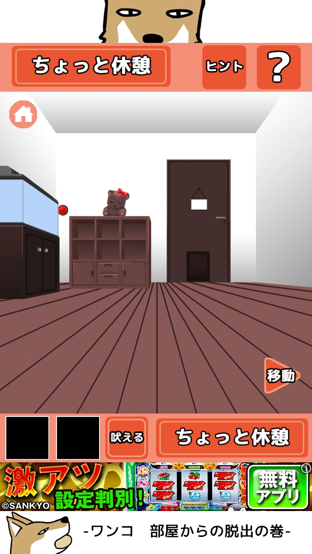 ワンコ お部屋からの脱出の巻 攻略 ステージ 11~15 |Page4 脱出ゲーム 更新日時:2015年7月22日 12:16 PM ページタイトルとURLをコピーする ステージ14 部屋奥にある棚の右側を拡大します。 棚をタップして奥へ押します。 <戻る>ボタンで戻って 棚を正面から拡大して、さらに棚の格子状 になっているところをタップします。 赤いボタンをタップします。 (ワンコが棚を上ってボタンを押すという 設定でしょうか) ワンコ用の扉をタップして開きます。 脱出しましょう。 ステージ11 ステージ12 ステージ13 ステージ14 ステージ15 脱出ゲーム ワンコ お部屋からの脱出の巻 攻略記事一覧 ページ: 1 2 3 4 5 前ページへ 次ページへ SQOOLのYouTubeチャンネル スポンサーリンク