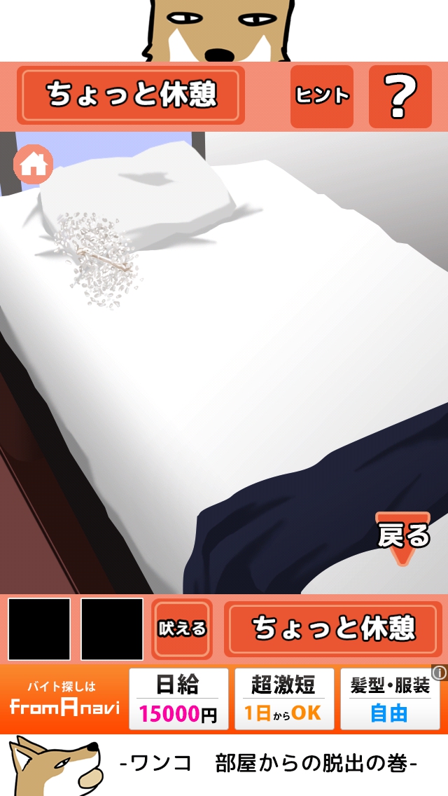 ワンコ お部屋からの脱出の巻 攻略 ステージ 16~20 |Page4 脱出ゲーム 更新日時:2015年7月22日 12:16 PM ページタイトルとURLをコピーする ステージ19 右の部屋へ移動します。 ベッドを拡大して枕のあたりをタップします。 ワンコがシーツを破って骨が出てくるので 取ります。 左の部屋へ戻ってワンコ用の扉を拡大します。 取った骨を扉にはめます。 扉をタップして開きます。脱出しましょう。 ステージ16 ステージ17 ステージ18 ステージ19 ステージ20 脱出ゲーム ワンコ お部屋からの脱出の巻 攻略記事一覧 ページ: 1 2 3 4 5 前ページへ 次ページへ SQOOLのYouTubeチャンネル スポンサーリンク