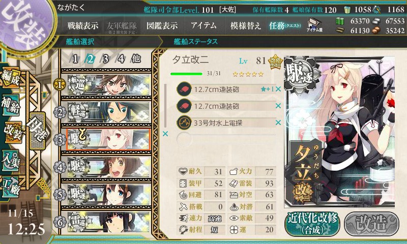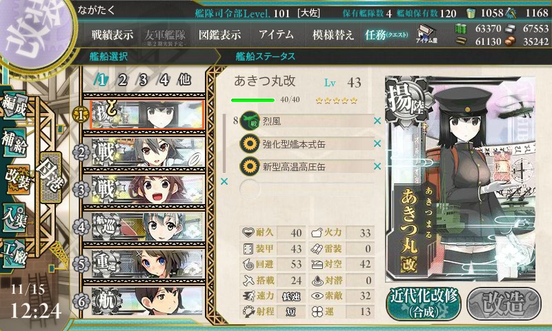 改修資材ももらえます。最近追加された要素なので、今後は改修素材も定期的にイベントで貰えそうですね。