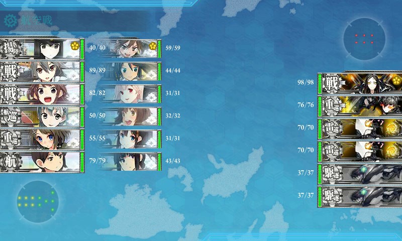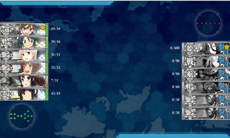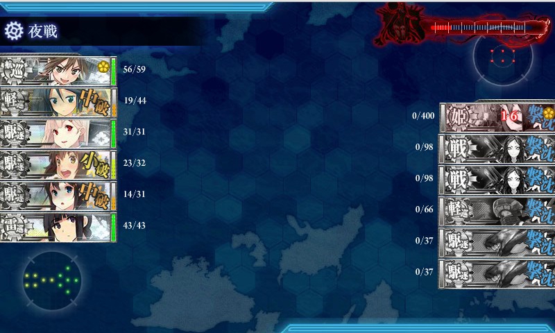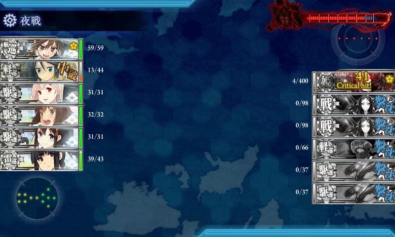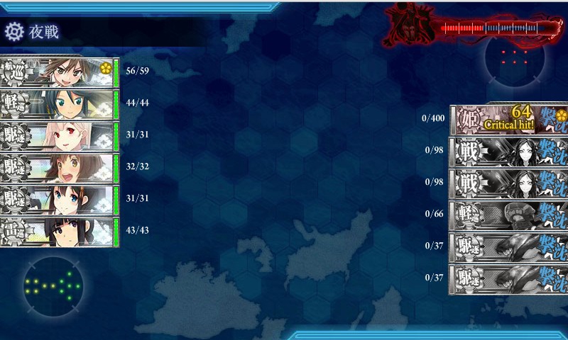 基本的には夜戦で大ダメージを与えて撃沈させる、という感じになりますね。昼戦で随伴艦を落として、ターゲットを絞れるといいですね。