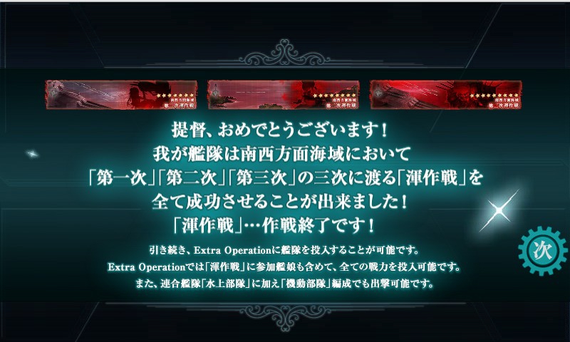 これにて、第三次に渡る渾作戦が成功しました!一応、表向きのイベントは完全制覇です。
