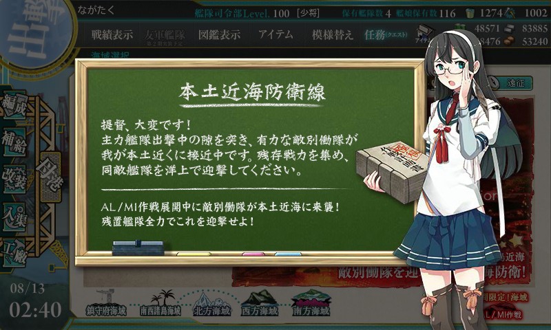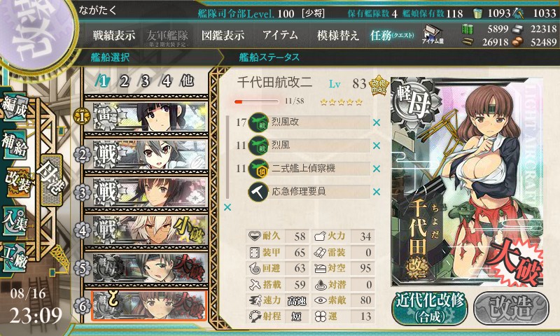 今回は完全に運が重要になります。提督が出来る最大限の人事を尽くし、あとは天命を待つのみ。特に司令部レベルが100を超えている提督にとって、このE6は運が悪いとかなり苦しめられます。理由は後述。