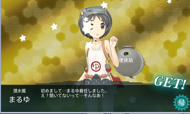 ここで、潜水艦まるゆがドロップ。S勝利すればこのようなレア艦娘も狙えます。