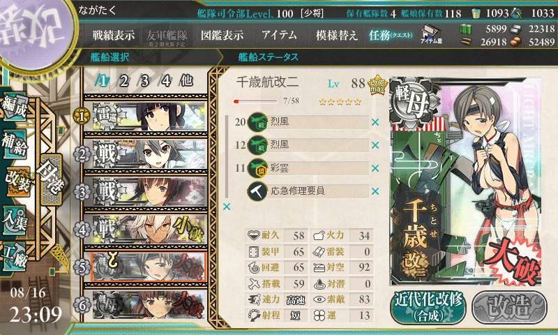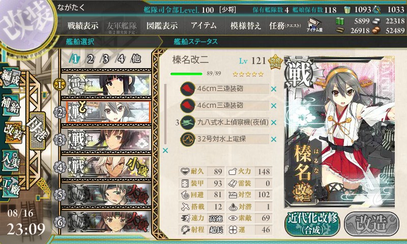 装備は主砲2、電探、零式水上観測機のテンプレでOKです。