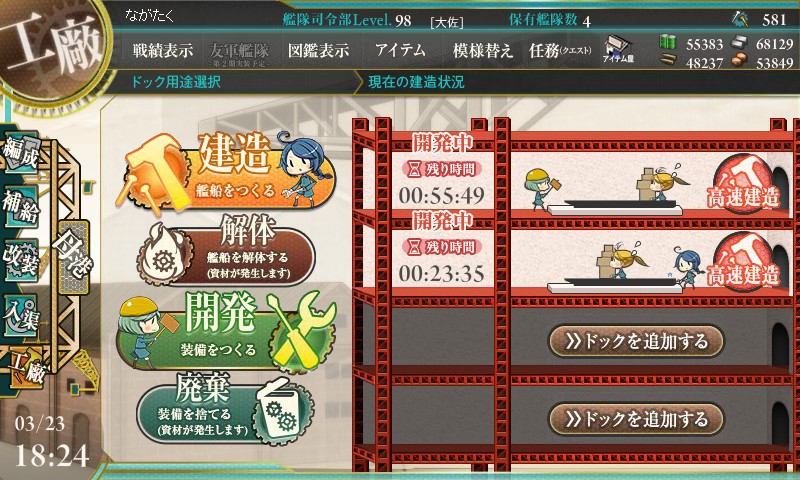 なんと2回目で24分が。ドキドキしながら建造結果を確認します。