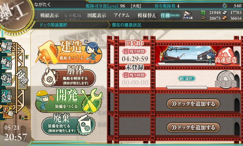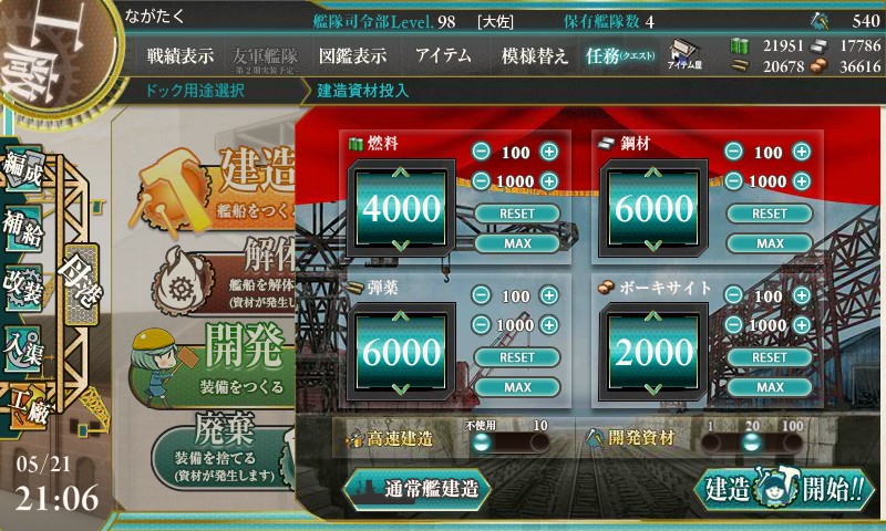艦これ 大型建造 ビスマルクを狙って大型建造チャレンジ!