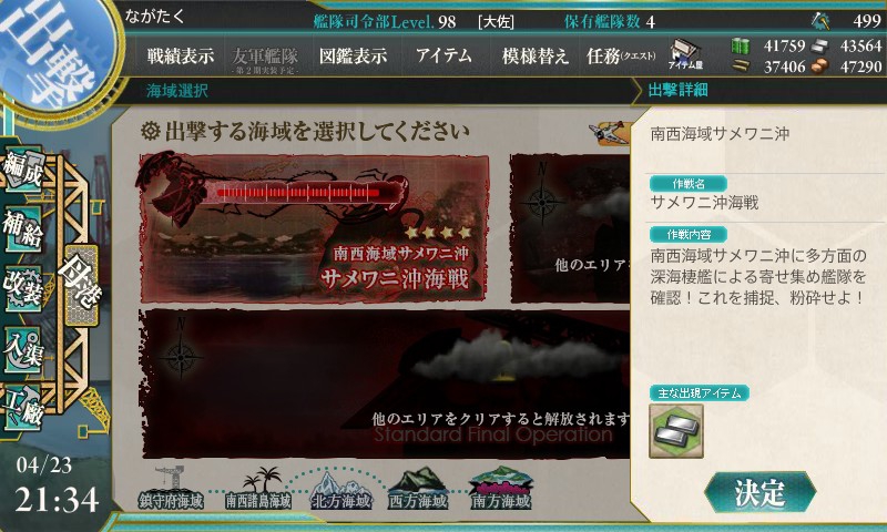 E-1を突破したところで、次のマップE-2が出現しました。E-1とはうってかわって、難易度が上昇しているとの噂。次はE-2のクリアを目指していこうと思います。