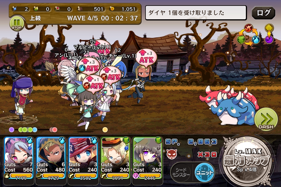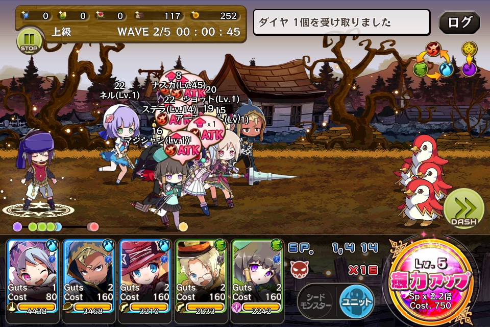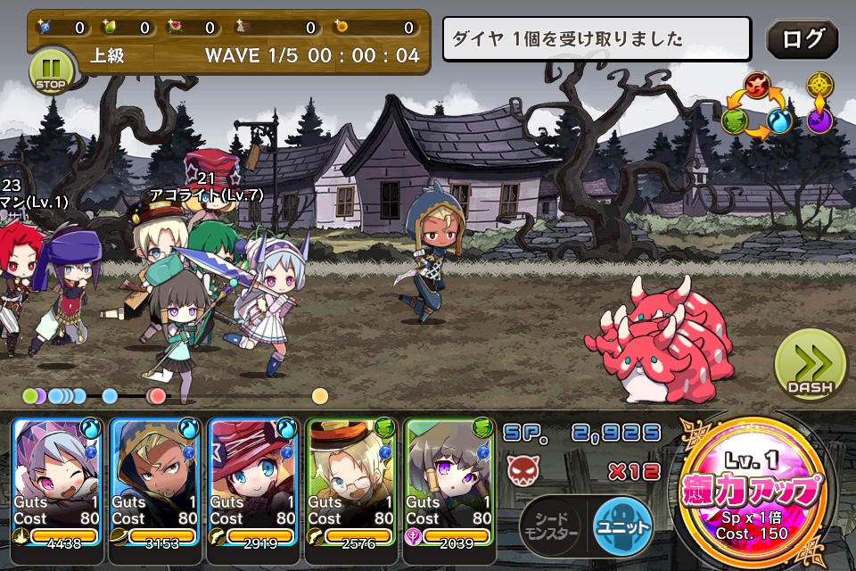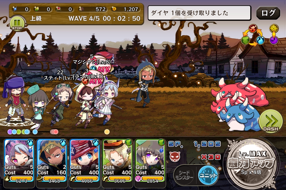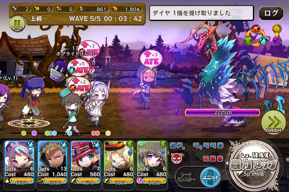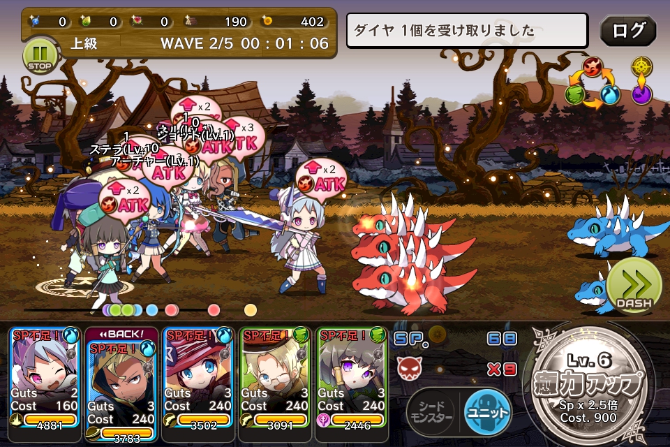 ここまで来るとSPにも余裕があり、シードモンスターのおかげて味方の攻撃力も上がっています。