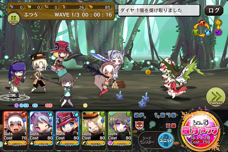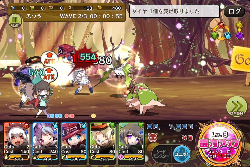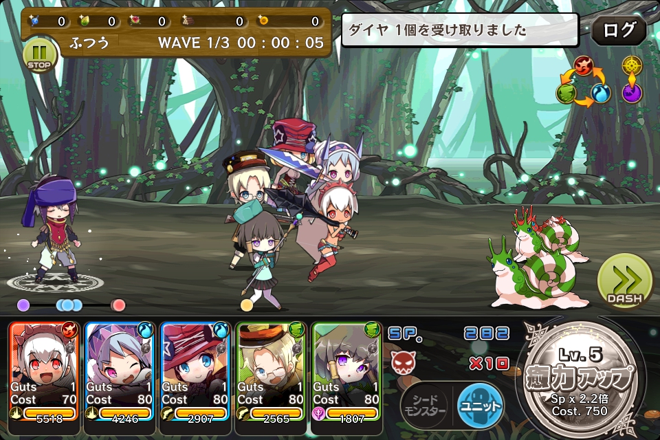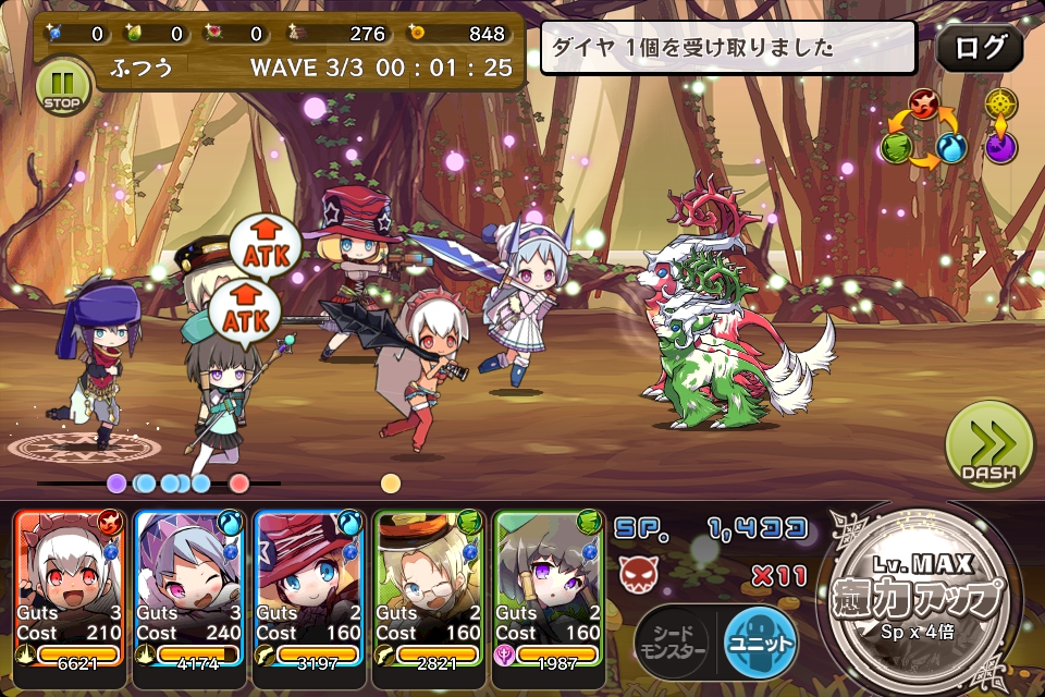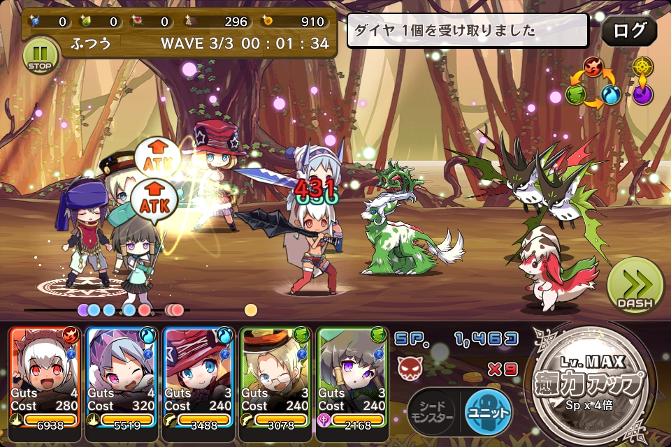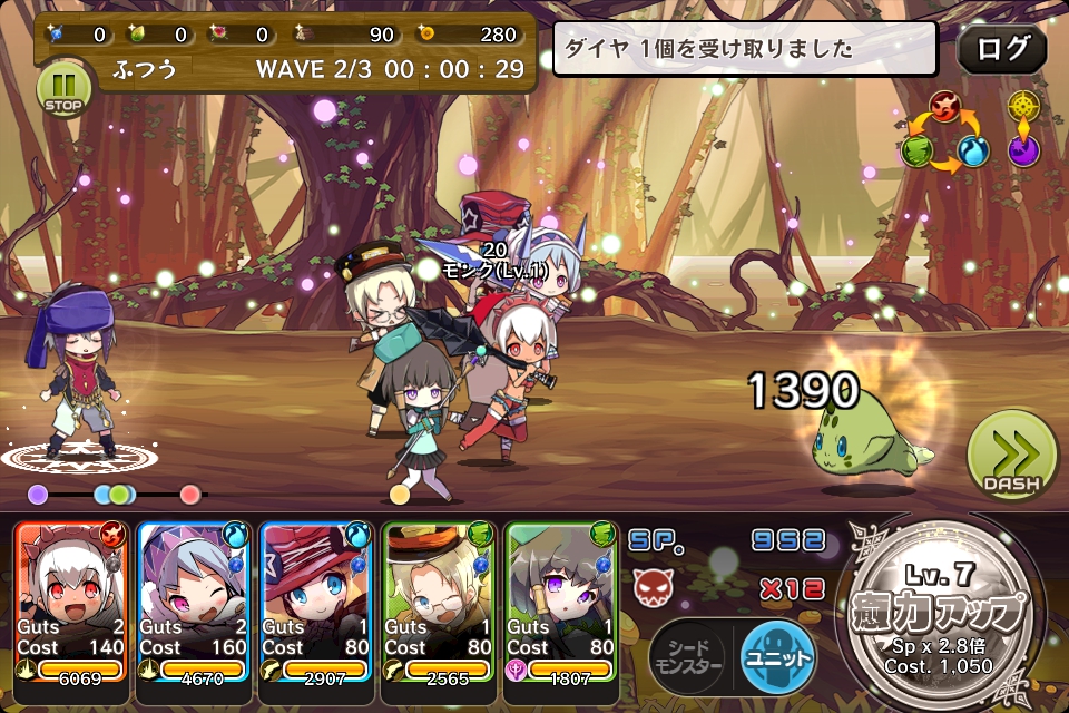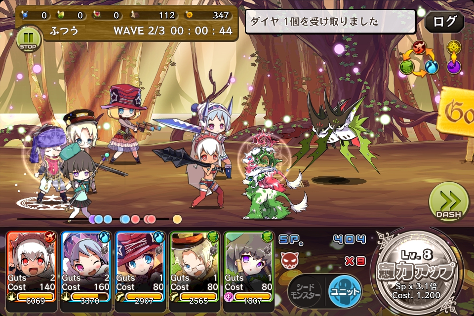敵が固まってきたらシードモンスターを使い、全体にダメージを与えるようにします。