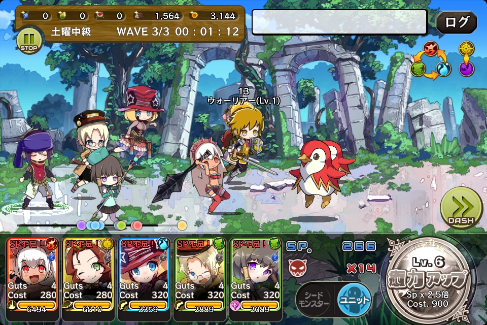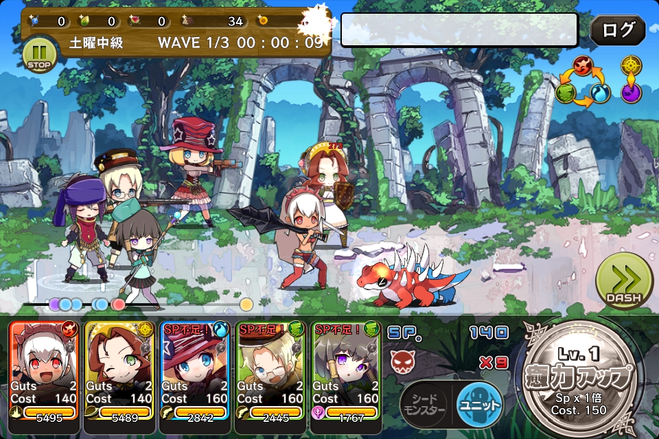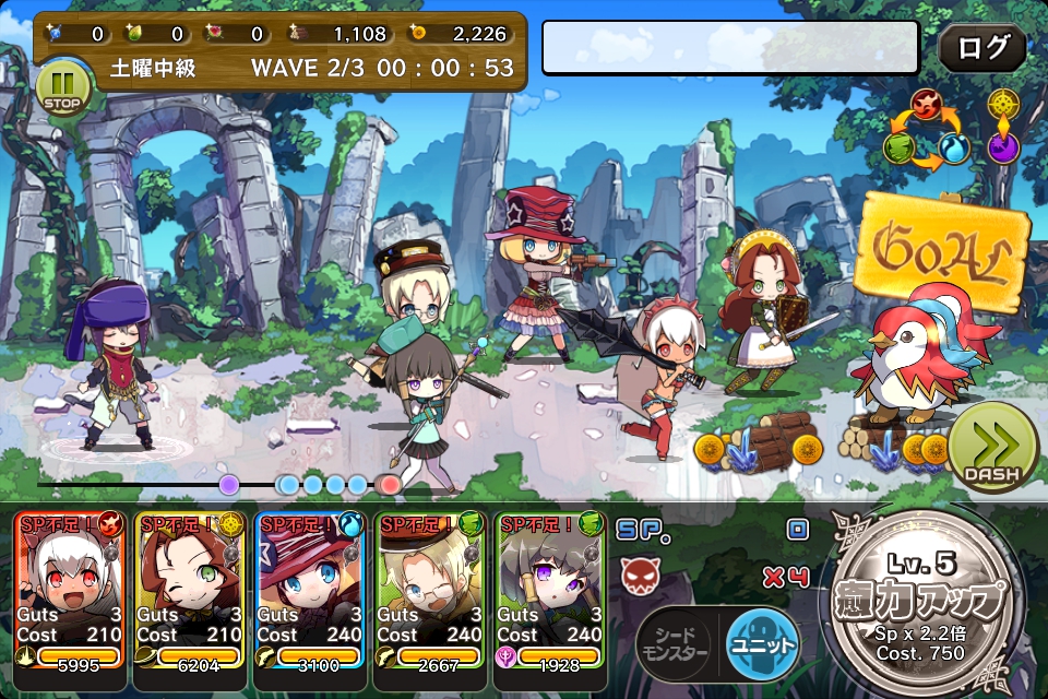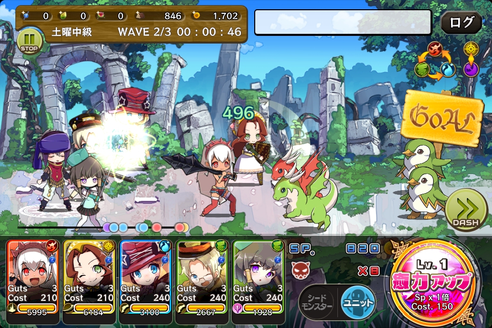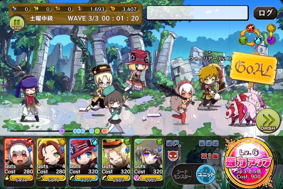 敵の体力や攻撃力は初級より高くなっています。ユニットのガッツを上げ、押し負けないようにしたいですね。