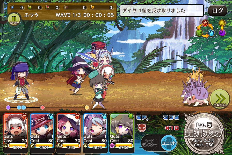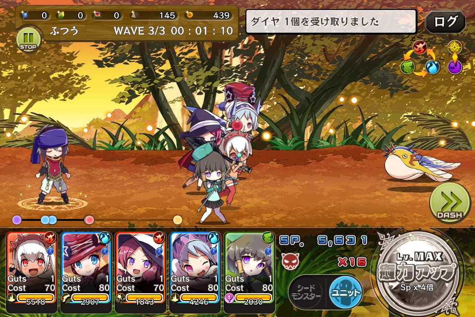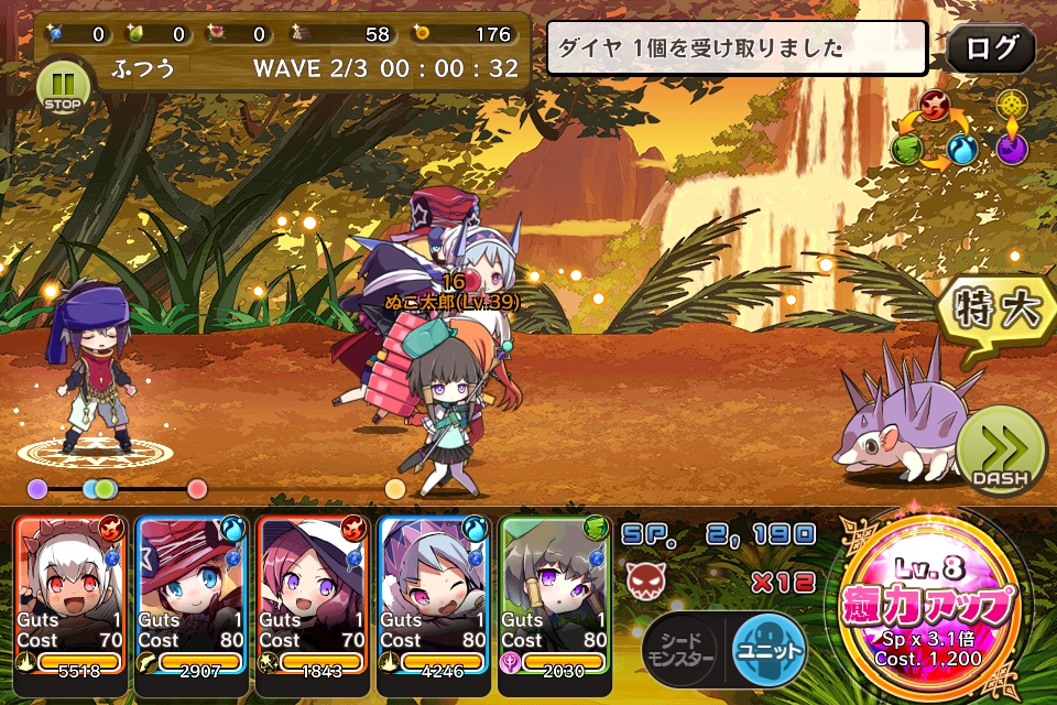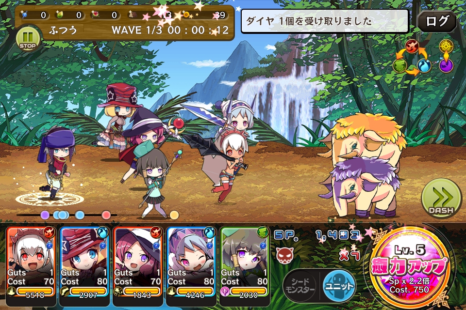 タフネスの大きい前衛ユニットで耐えながら、攻撃していくようにします。