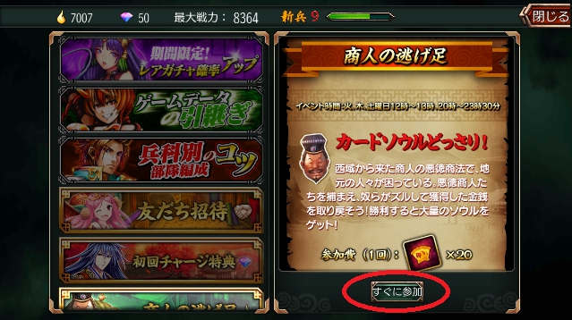 三国魂 ソウル攻略!ソウルを稼ごう!商人の逃げ足