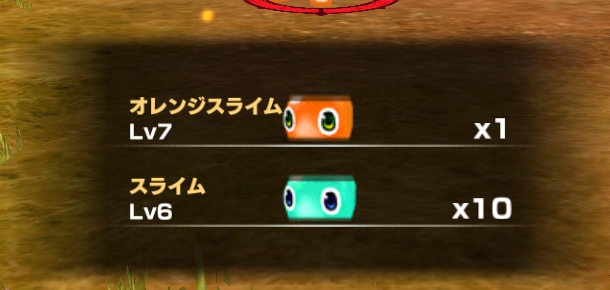 ステージ1では、オレンジスライム1体、スライム10体が登場します。
