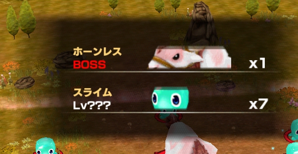 ラストステージでは、ホーンレス1体、スライム7体が登場します。