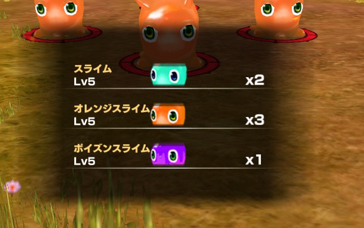ここでは、スライムが2体、オレンジスライムが3体、ポイズンスライムが1体、登場します。