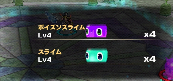 第2ステージでは、ポイズンスライム4体、スライム4体が登場します。