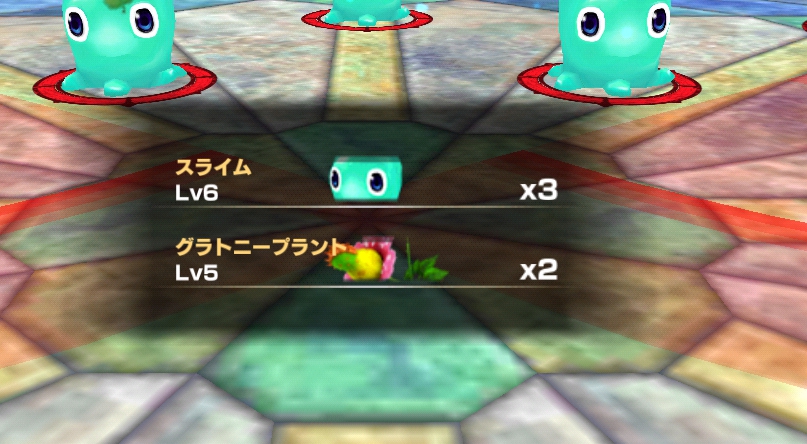 配置としては、左右の端にグラトニープラント、その間にスライムが3体になっています。