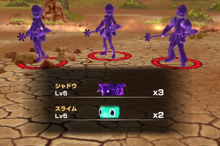 最初のステージでは、シャドウが3体、スライムが2体登場します。