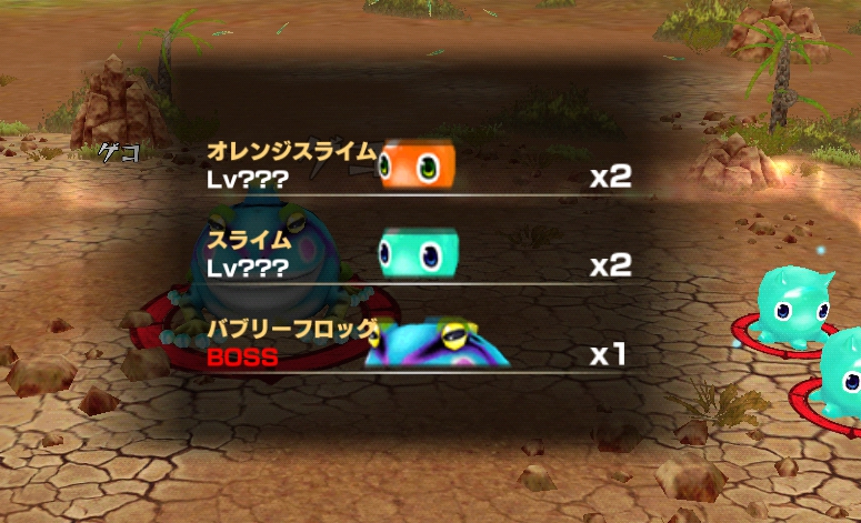 最後のステージでは、オレンジスライムが2体、スライムが2体、バブリーフロッグが1体登場します。