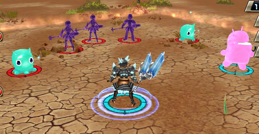 配置としては、左右の端にスライムが2体、そしてその間にシャドウが3体となっています。