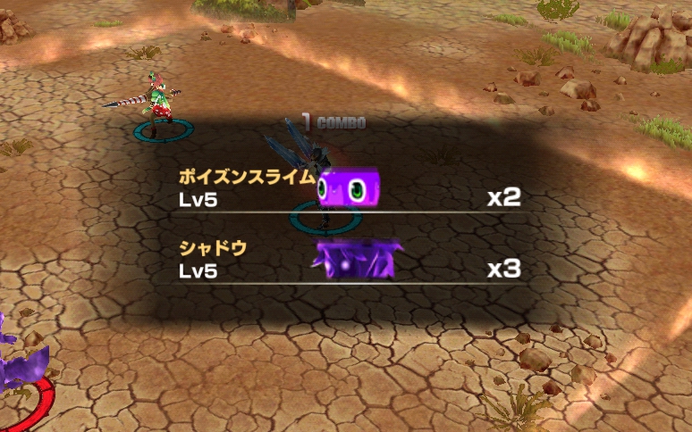 次のステージ2では、ポイズンスライムが2体、シャドウが3体登場します。