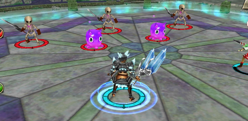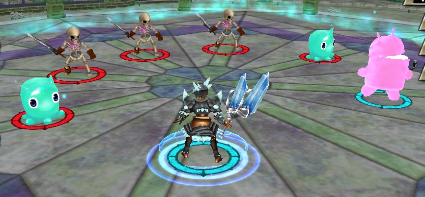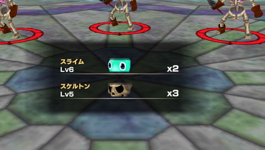 配置としては、左右の端にスライム、その間に3体のスケルトンが登場しています。