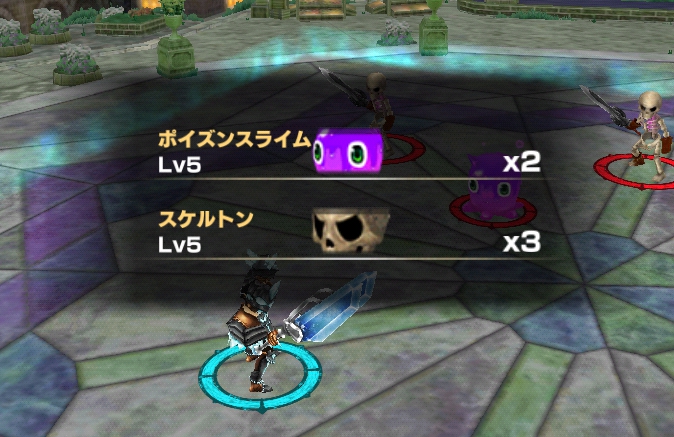 ステージ2では、ポイズンスライムが2体、スケルトンが3体、登場します。