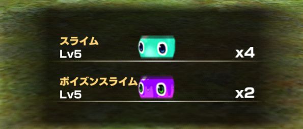 最初のステージでは、スライム4体、ポイズンスライム2体が登場します。