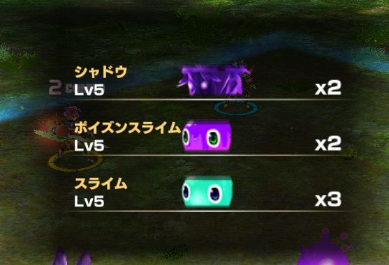 ステージ2では、シャドウ2体、ポイズンスライム2体、スライム3体が登場します。