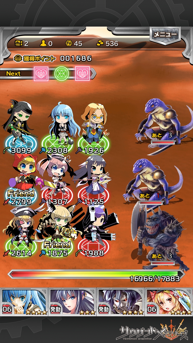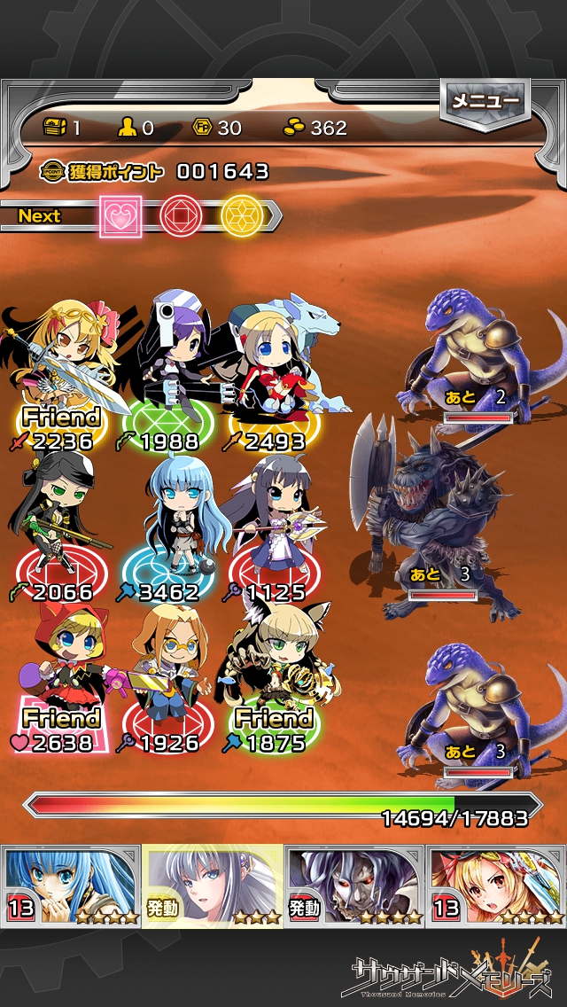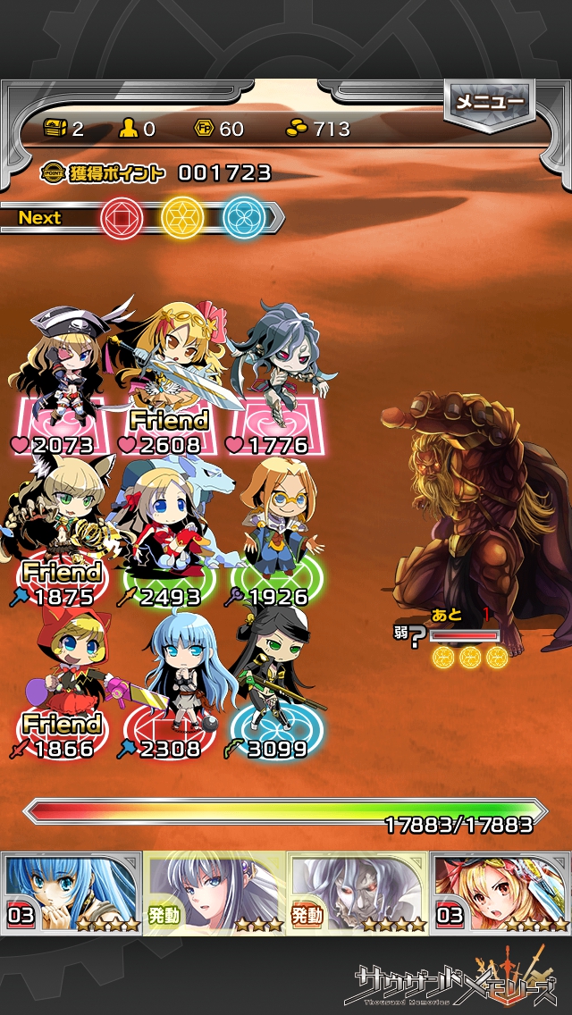 通常攻撃が横1列で3000近くのダメージ。