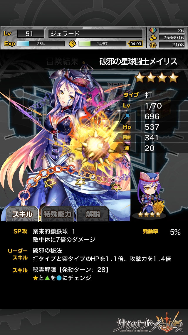千メモ(サウザンドメモリーズ) 決戦イベント 「★4決戦!!星球闘士メイリス」 中級 攻略