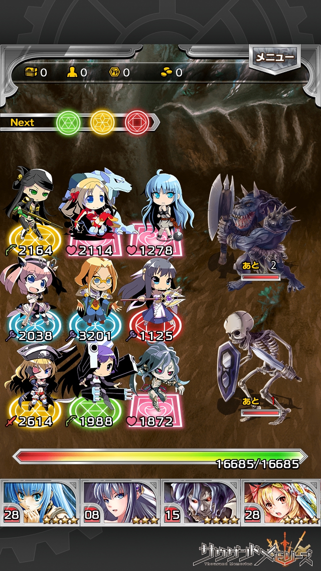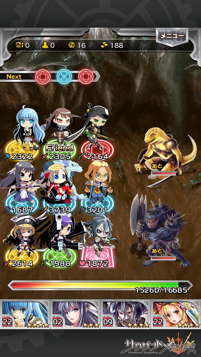 千メモ(サウザンドメモリーズ) 攻略 デイリークエスト・月曜 剣戦士たちの荒山 初級・中級 攻略 公開日時:2014年4月15日 5:50 AM ページタイトルとURLをコピーする 月曜のデイリークエスト 初級・中級 デイリークエストがリニューアルされましたね! まずは月曜日、【斬】の武器が手に入るクエストです。 エリア:剣戦士たちの荒山 クエスト:初級・眠れる刃 体力:10 戦闘:5 雑魚敵のHPは大体5000位ですね。 戦闘:1/5 ハイオーガ スケルトンソルジャー デイリークエスト 攻略記事リスト 戦闘:2/5 ドラゴンソルジャー ハイオーガ 戦闘:3/5 ハイオーガ×2 ドラゴンソルジャー 戦闘:4/5 ドラゴンソルジャー×3 戦闘:5/5 BOSS 紅剣法師 【紅剣法師】 HPは50000位。 通常攻撃は1000位のダメージですね。 以前のデイリークエストとほぼ一緒ですね。 獲得経験値 獲得アイテム 【HN】アイアンバスター Pages: 1 2 次ページへ SQOOLのYouTubeチャンネル スポンサーリンク スポンサーリンク
